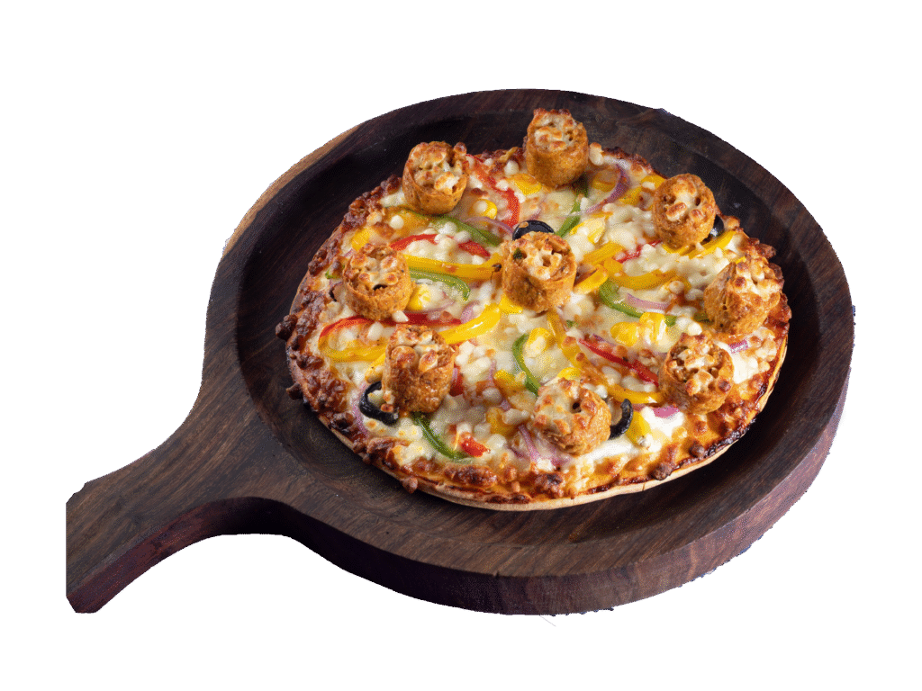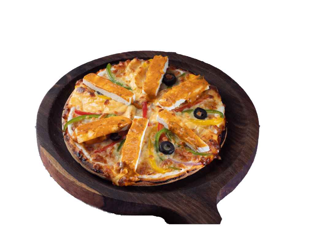 Freshly baked crust topped with rich cheese, zesty sauce, and a mix of delicious toppings – a slice full of flavor and happiness in every bite.